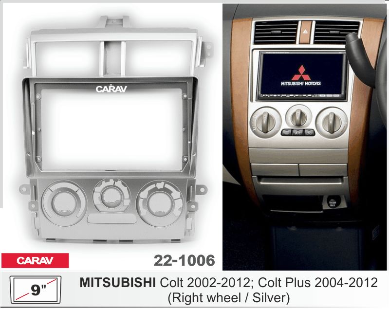 —CARAV 22-1006 (9 дюйм. монтажная рамка для а/м MITSUBISHI Colt 2002-2012; Colt Plus 2004-2012 (руль справа / серебр.)