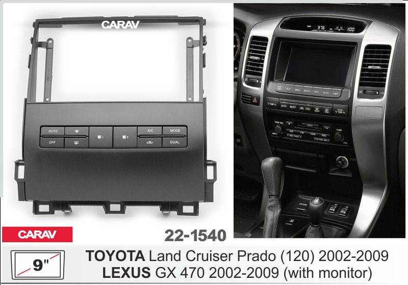 —CARAV 22-1540 (9 дюйм. монтажная рамка для а/м LEXUS GX (470) 2002-2009 / TOYOTA Land Cruiser Prado (120) 2002-2009 (только для а/м с монитором)